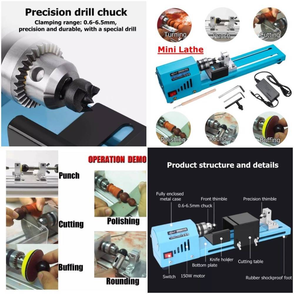 Продолжает ТОП еще один мини-токарный станок на Алиэкспресс. Он разработан для любителей деревообработки дома.