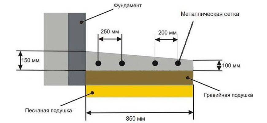 Важно, чтобы ширина покрытия на 20 см превышала длину кровельного свеса. Суглинки и рыхлые почвы при намокании теряют часть их несущей способности