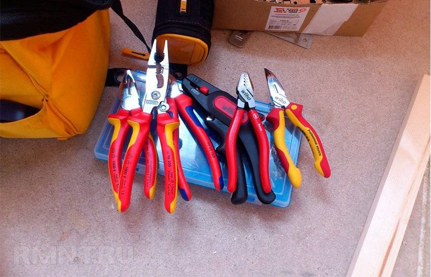 - Работая с деталями под напряжением, держитесь только за ручки плоскогубцев (для этого подходят только диэлектрические плоскогубцы)