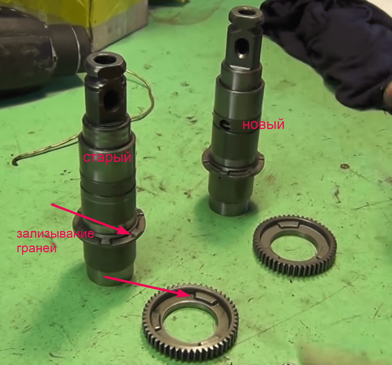 - срезанные зубья на малой шестерне ротора или на большой шестерне промежуточного вала;