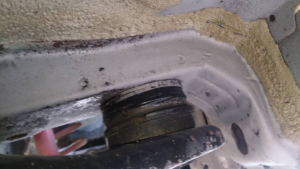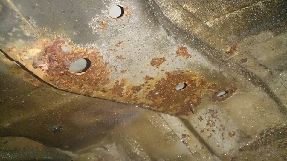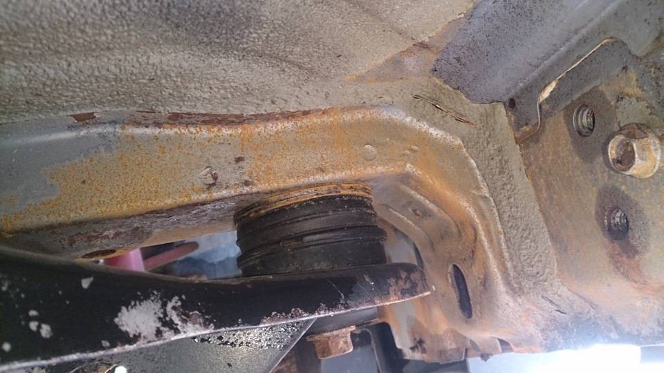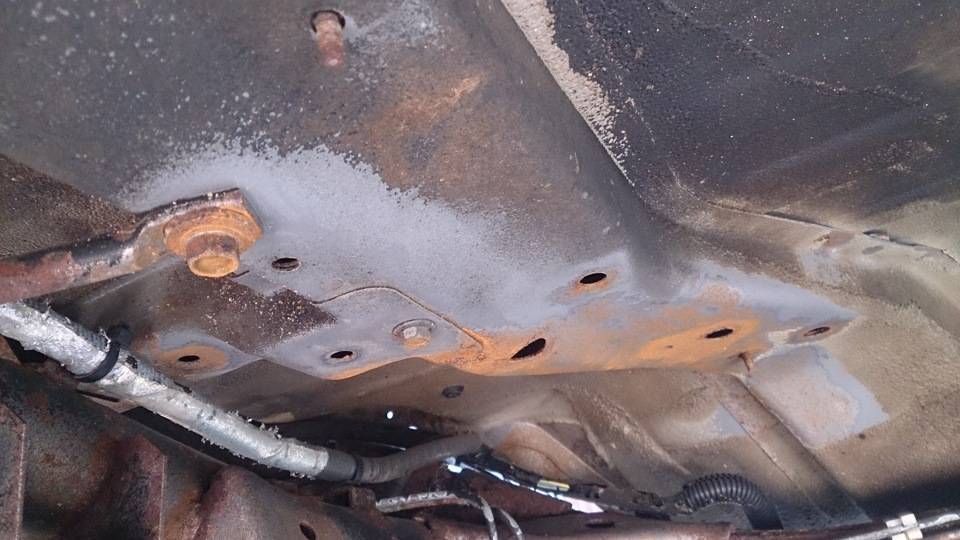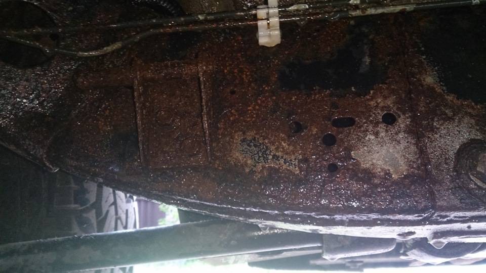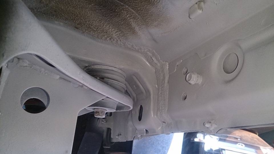 Это самые плохие места. При этом пальцем через технологические отверстия щупаю раму и лонжероны внутри — там все гладко, т.е. еще краска на месте. Странно, на Паджерике у меня было все наоборот.