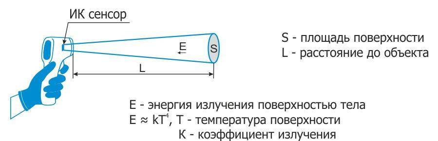 Рис.1.Как происходит измерение температуры поверхности пирометром