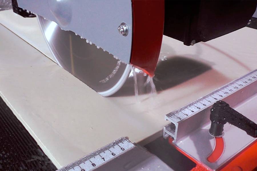 Высокая частота оборотов шпинделя здесь не играет значимой роли. Чтобы распил был эффективным с точки зрения качества и количества, алмазному диску хватает 2–3 тысяч оборотов в минуту на холостом ходу.