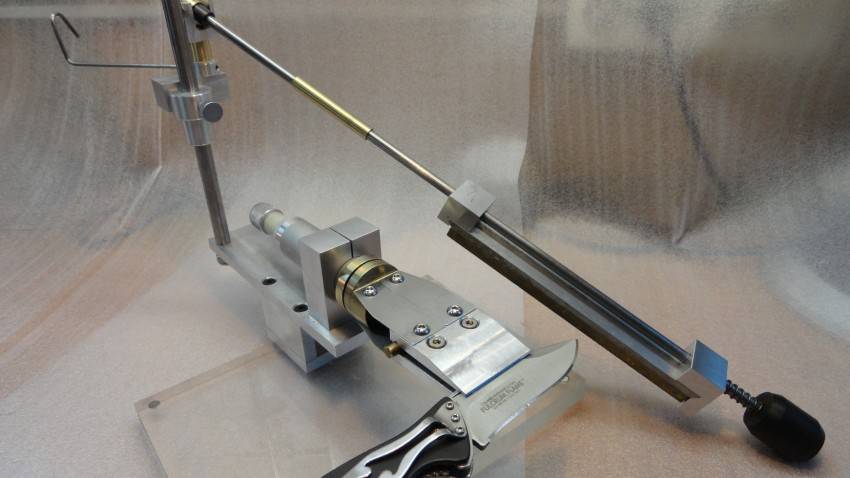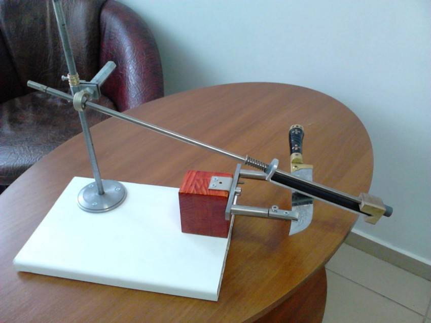 Самостоятельно сделать станок для заточки ножей вполне можно в домашних условиях. Основным требованием, при создании самодельного станка для заточки, является жесткое закрепление затачиваемого лезвия и абразивного элемента. Благодаря этому достигается главное требование ко всей процедуре: создание и сохранение угла заточки.