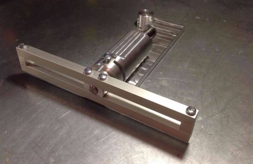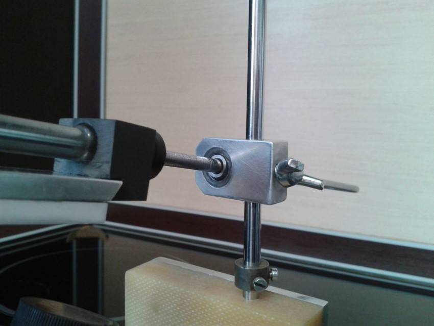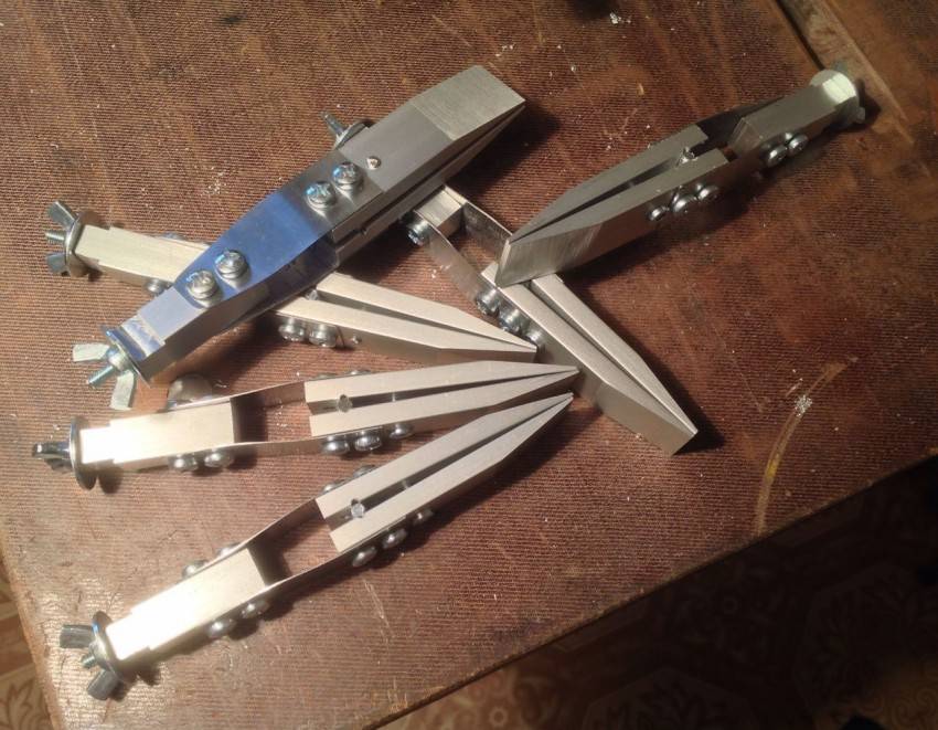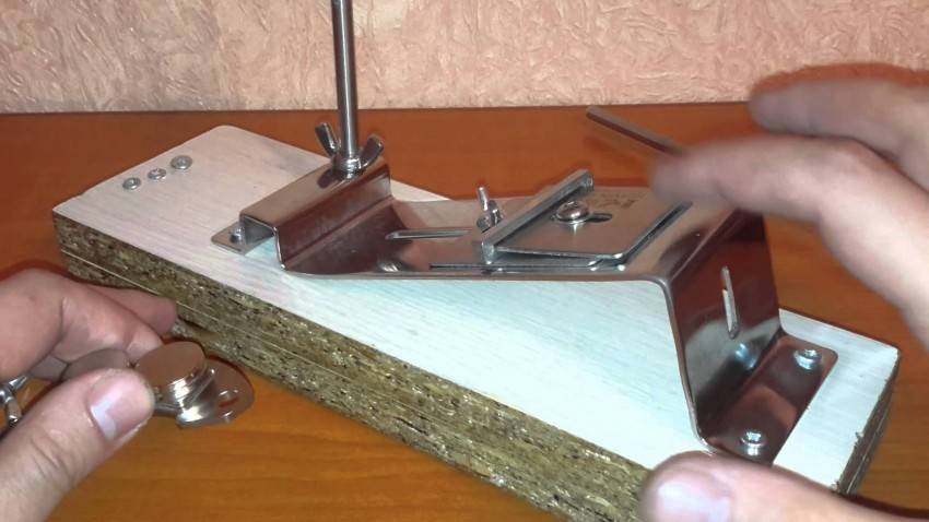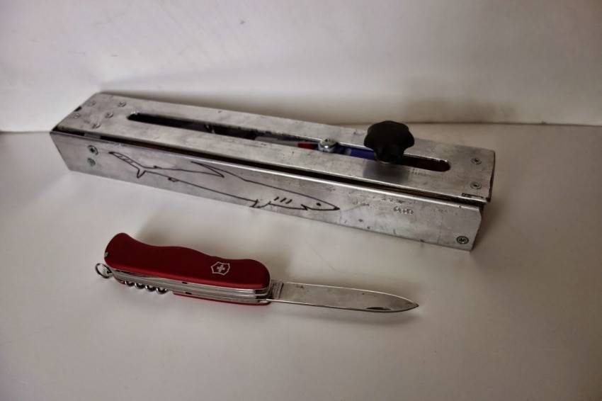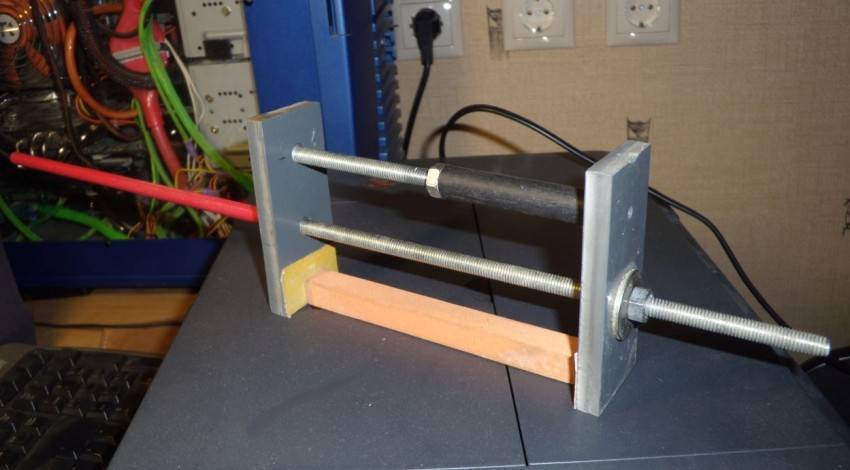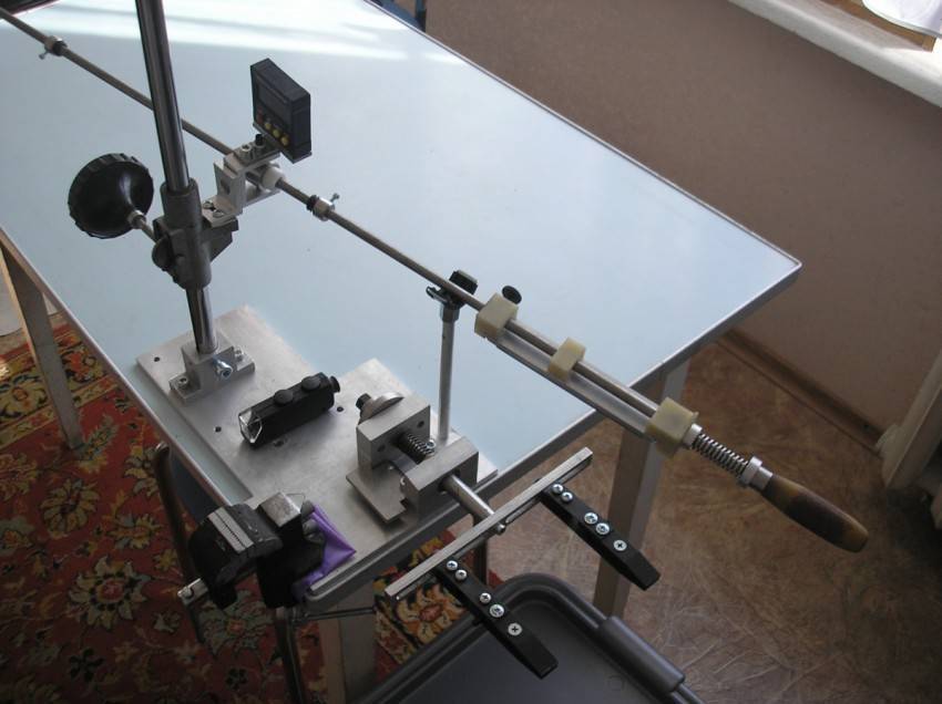 Разновидностью самодельного приспособления есть конструкция с движимой, регулируемой площадкой и устойчиво крепящимся в ней ножом. Такая конструкция для крепления требует идеально ровной поверхности.