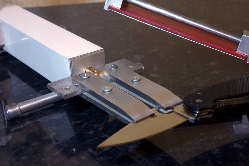 Преимуществом такого устройства является его простота, легкость сборки и дешевизна. Недостаток заключается в отсутствии жесткого закрепления затачиваемого лезвия.