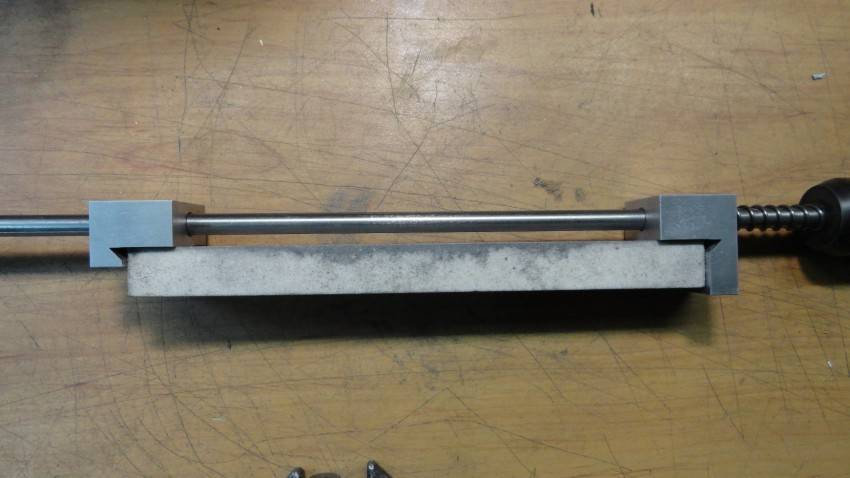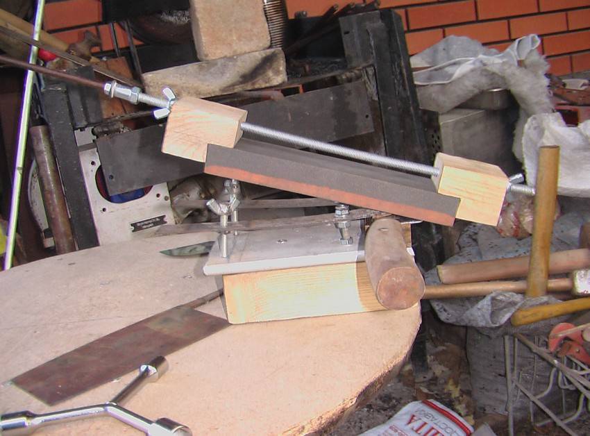 Между брусками зажимает прямоугольные заточные камни или изготавливает несколько сменных заточных брусочков.