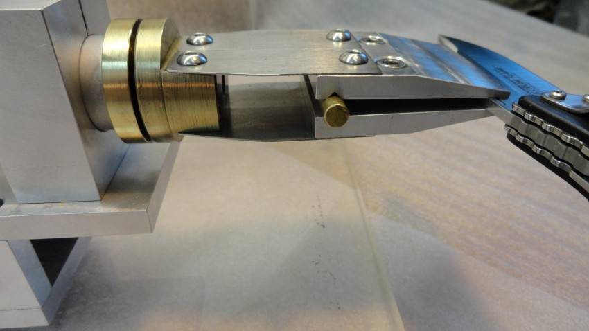 При обработке лезвия на треугольниках нож надо держать 100% вертикально. Если такую конструкцию долго использовать, стяжки могут ослабеть и выставленный градус бруса изменится, а вместе с ним и угол затачивания.