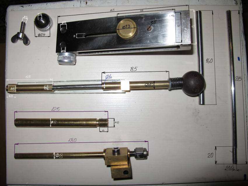 Помимо стеклорезов, для изготовления самоделки также понадобятся латунные втулки, на одном конце которых имеется отверстие с резьбой М3, а на другой — резьбовая шпилька с аналогичной резьбой.