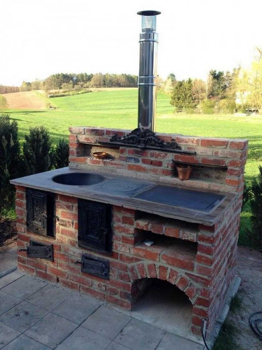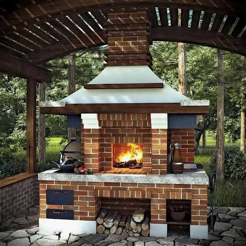 В таком случае, хозяин может придать данной конструкции целый ряд функций, не ограничиваясь исключительно приготовлением продуктов на жаре от перегоревших дров или древесного угля. Рядом с барбекю можно установить печь с варочной поверхностью, зарезервировать места для хранения дров, установить поверхность для разделки продуктов. Поэтому в данном случае имеется смысл говорить о целом комплексе, предназначенном для приготовления на улице различных блюд.