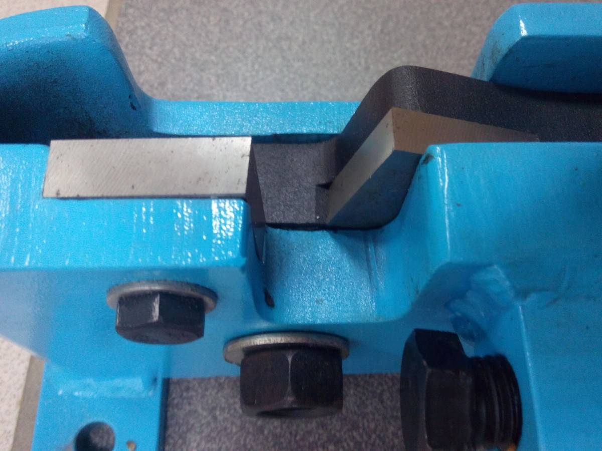 Процесс деформации происходит в результате надавливания верхнего ножа по линии разметки. Режущее основание соприкасается с нижним ножом, в результате которого получается гладкий край и аккуратная железная деталь.