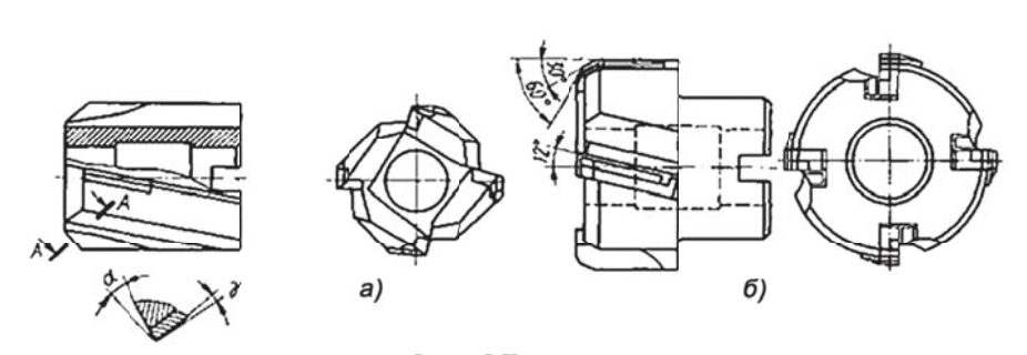 Рис. 10. Насадные зенкеры: а — с напаянными пластинками из твердого сплава, б — с механическим креплением ножей, оснащенных пластинками из твердого сплава