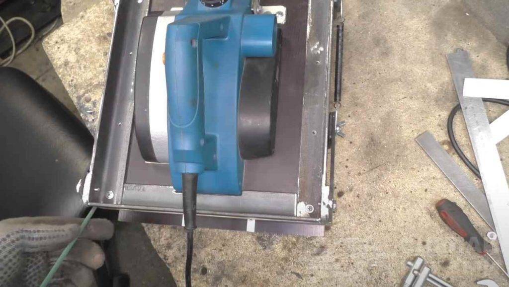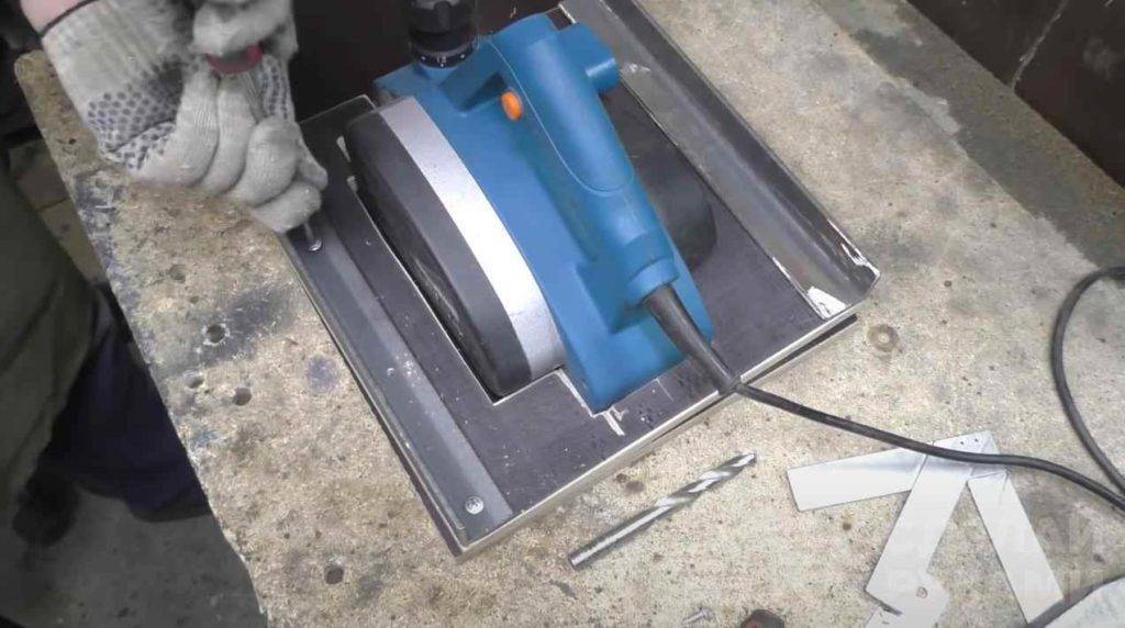 - Делаем крепление подставки для электрорубанка.