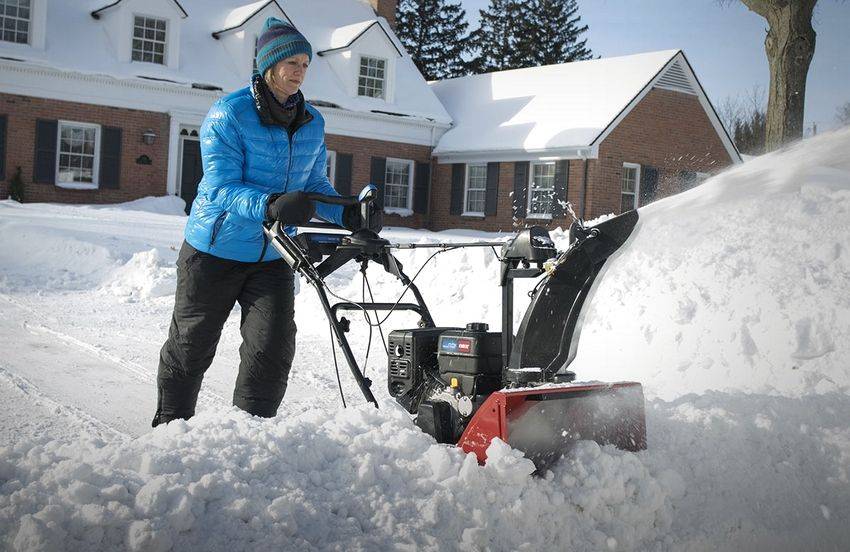 Снегоуборщики более мощные на бензиновом ходу — от 3 до 15 лошадиных сил, что позволяет убирать большие территории за короткое время. Но у самоходных приборов чаще всего большой вес. Из-за чего справляться с управлением может только мужчина.