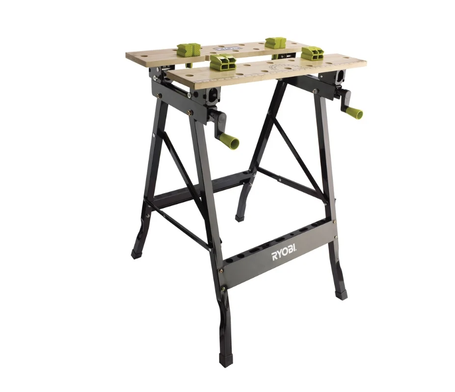 Легким и удобным помощником для столяра будет верстак Keter Folding Work Table. Он сделан из полипропилена, который не только имеет небольшой вес, но обладает устойчивостью к ультрафиолету. Модель оснащена телескопическими ножками, благодаря им высоту можно регулировать на уровне 75,5-85,5 см. В конструкции предусмотрена и нижняя столешница, на ней удобно хранить инструменты или материалы для выполнения конкретной операции. Несмотря на маленький вес (13,5 кг) грузоподъемность устройства составляет 453 кг. В комплекте идет два прижима, с помощью которых можно фиксировать обрабатываемые заготовки.
