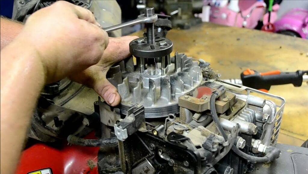 Часто проблемы с запуском вызываются обрывом стартерного шнура. В простейшем варианте ремонт стартера заключается в связывании веревки узлом. В более сложных ситуациях понадобится разбирать весь узел и менять шнур.