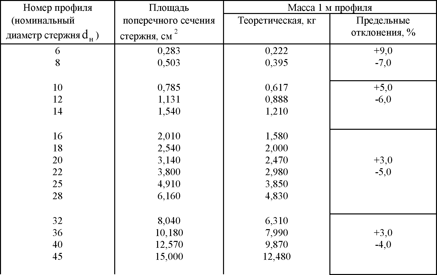 ∅6÷∅40 мм, вес 1 метра регламентируется ГОСТом 5781-82: