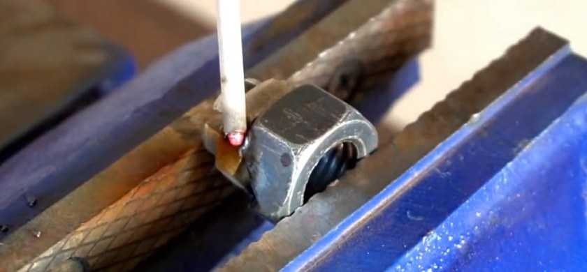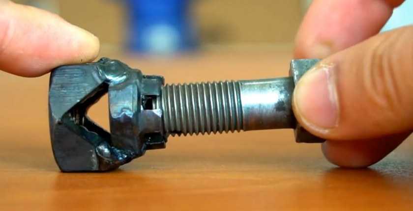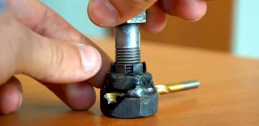- Сверху приваривается еще одна гайка диаметром поменьше. Она понадобится, чтобы вкрутить прижимоной болт.