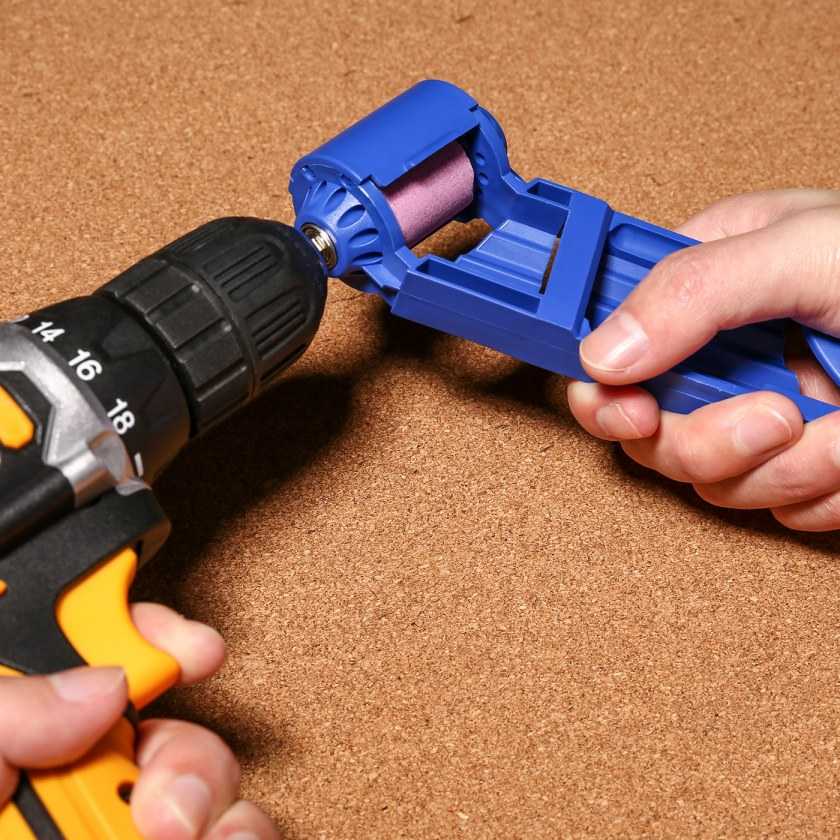 Качественно заточить сверло на наждаке без опыта очень сложно. Поэтому для электроинструмента производятся специальные насадки. Обычно они устанавливаются на дрель.