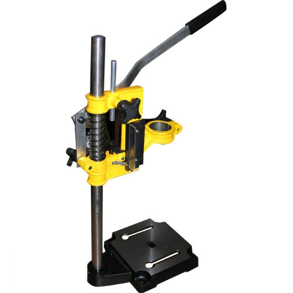 - модель «Калибр», позволяющая выполнять трансформирование ручного электроинструмента в стационарный станок для сверления. Устройство пригодно для дрелей с шейкой 4.3 см. Широко используется при сверлении металлов с толщиной в 6 см. Конструкция изготовлена на основе алюминиевого сплава;