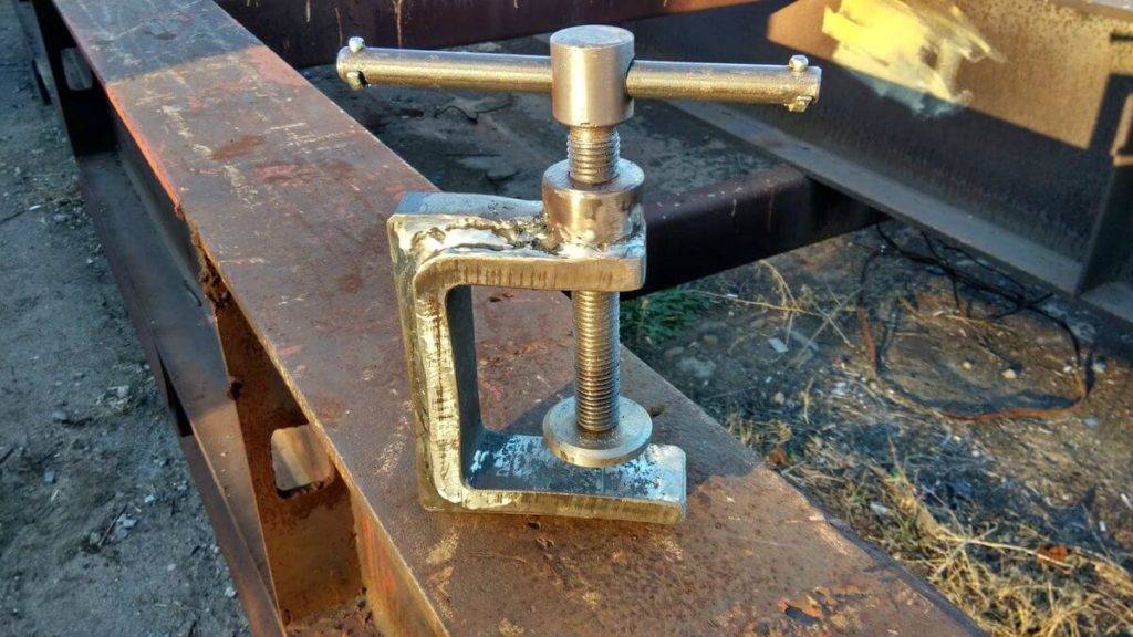 Он зацепляется за гайку. Работу можно считать оконченной. Стальные струбцины получаются несколько тяжелее, но при этом они ещё и надежные. Зажимы используют один и тот же стержень. Они являются довольно прочными и служат долго.
