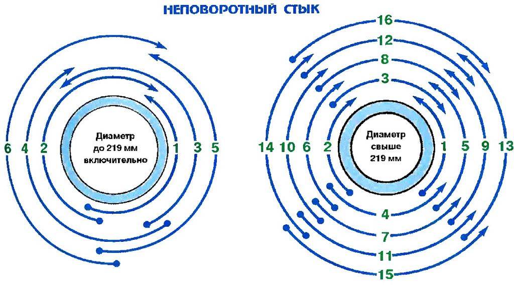 Они должны быть смещены миллиметров на 30-35 друг относительно друга. Если сварка выполняется в среде аргона неплавящимся электродом, а защитить обратную сторону шва аргоном нет возможности то можно использовать специализированный флюс пасты. Их нужно наносить на корневую часть шва с внутренней стороны до сварки.