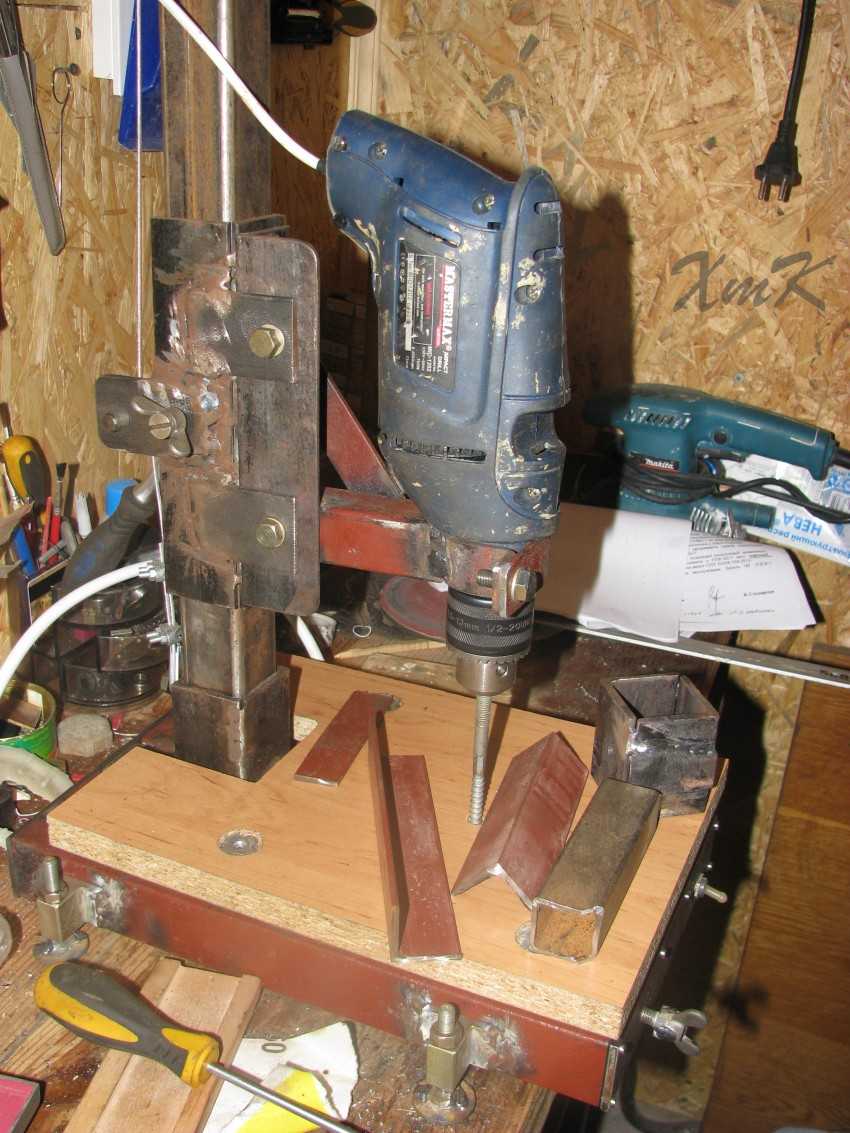 Самодельный сверлильный станок из дрели с движком от бытовой техники — пошаговая схема изготовления