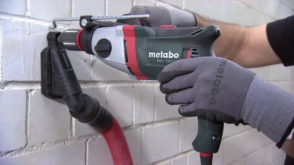Как при работе с перфоратором, так и дрелью обязательно использование защитных очков и фильтрующей маски для органов дыхания. В противном случае неизбежны травмы глаз и вдыхание каменной мелкодисперсной пыли.