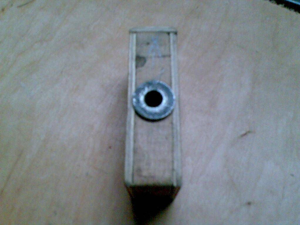 Оно представляет собой некий деревянный шаблон с металлической втулкой для сверла внутри.