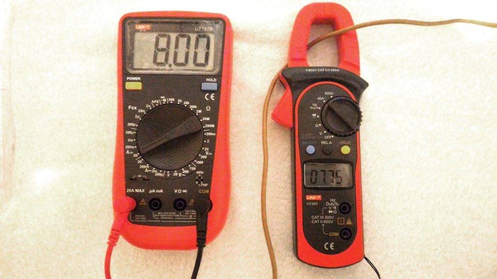Если ток в проводнике очень маленький и тестер не может точно его определить, то можно «помочь» прибору, намотав проводник на одну из половинок клещей. В таком случае на дисплее отобразится сумма токов и чтобы узнать точное значение надо разделить полученный результат на количество витков.