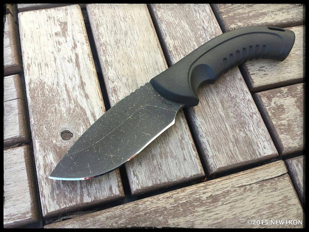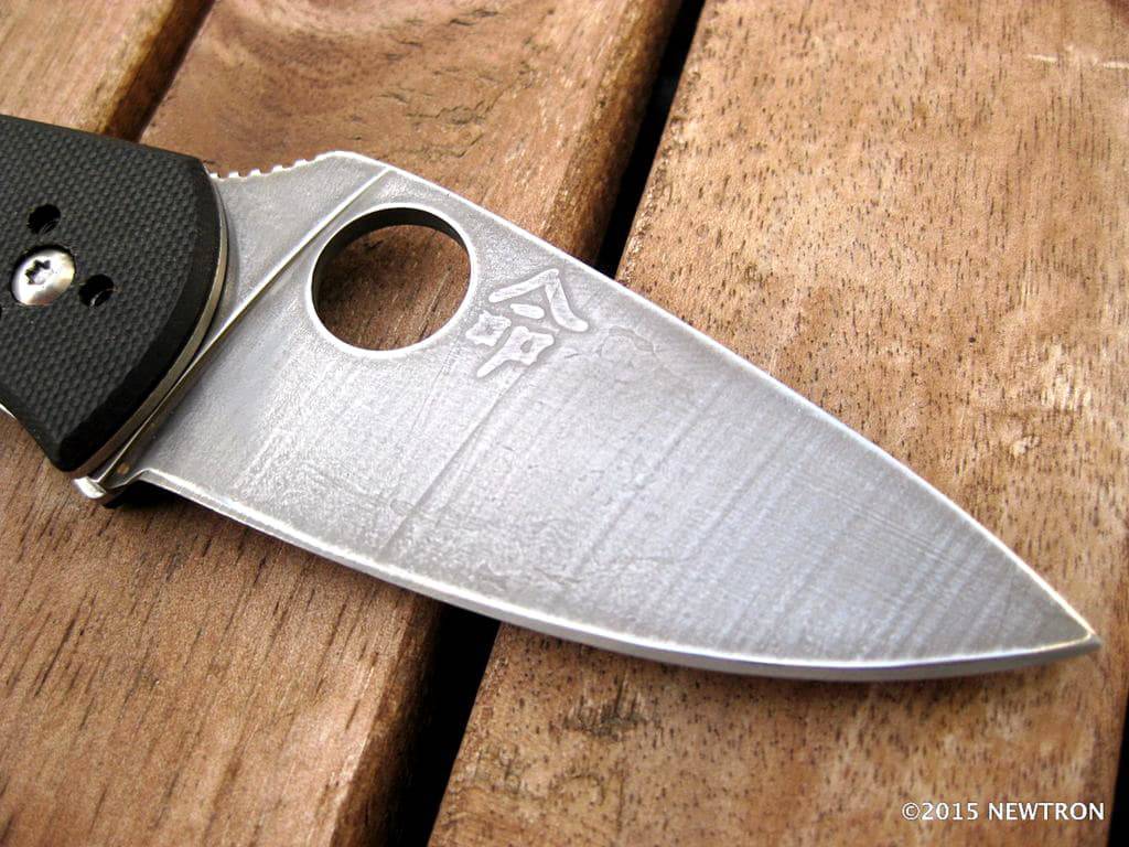 - Искусственное старение поверхности придает ей текстурированный вид. Этот способ подойдет для не очень качественно выполненного травления (скрывает неравномерности травления). Во время обработки трафарет остается на лезвии в течении всего процесса.