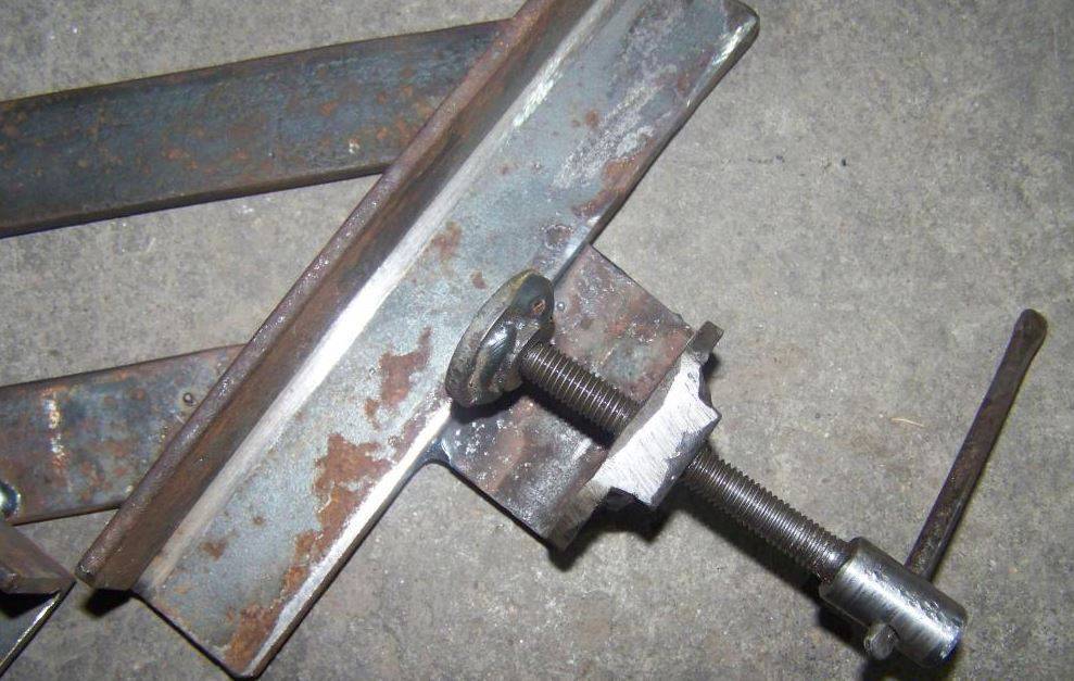 В таком случае достаточно на одном конце её дуги приварить опорную площадку, а на другом — гайку, в которую и будет устанавливаться регулировочный винт с губкой и рукоятью.