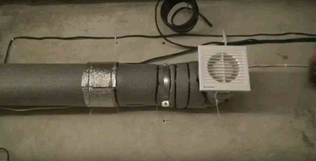 Эффективный обмен обеспечивает компоновка в канал вентилятора во влаго- и термозащите. Он выдувает отработанный воздух, на смену которого подается свежий. Принудительный воздухообмен требует точных расчетов по определению мощности электрического вентилятора, рабочих параметров по установке системы, в частности, сечения воздуховода. Обычно, диаметр трубы выбирается в пределах 160-180 мм