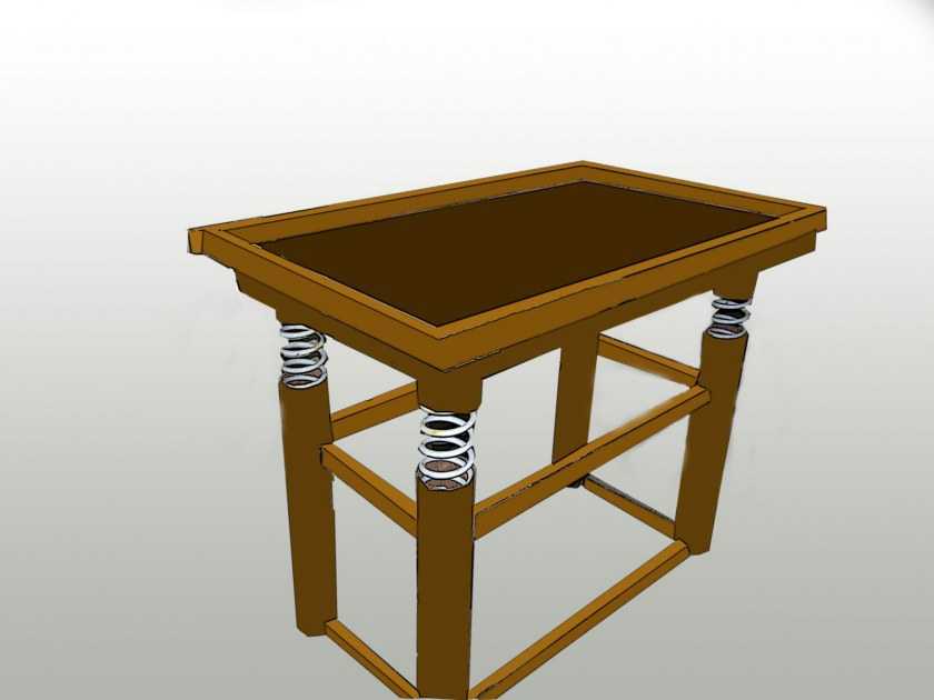 Благодаря вашим навыкам и стремлениям возможно создать инструмент, который по качеству будет на уровне магазинного, главное — осознавать, как устроен данный инструмент и зачем он нужен. Сам по себе стол выглядит как обыкновенный железный стол, в ножках которого находятся шарниры и пружины.