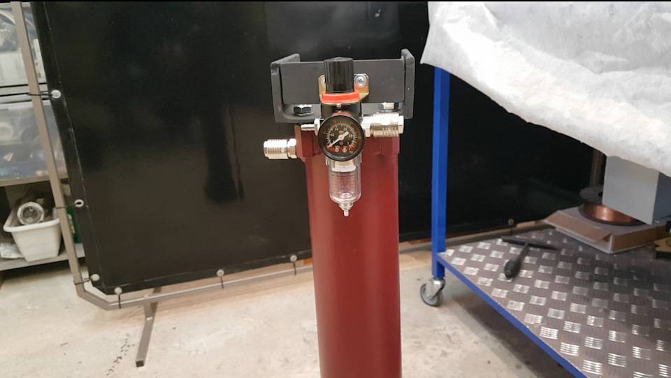 для старого компрессора у меня был сделан фильтр-осушитель из пластикового фильтра для воды, заполненного силикагелем (кошачий туалет). Со своей задачей он справлялся хорошо, но компрессор я поменял на более мощный, и если старый давал максимум 8 атм, то новый уже 10, а это максимальное давление, которое выдерживают такие фильтры. Поэтому. чтобы не получить БАБАХ в мастерской, я решил сделать новый фильтр, который и представляю на суд общественности.