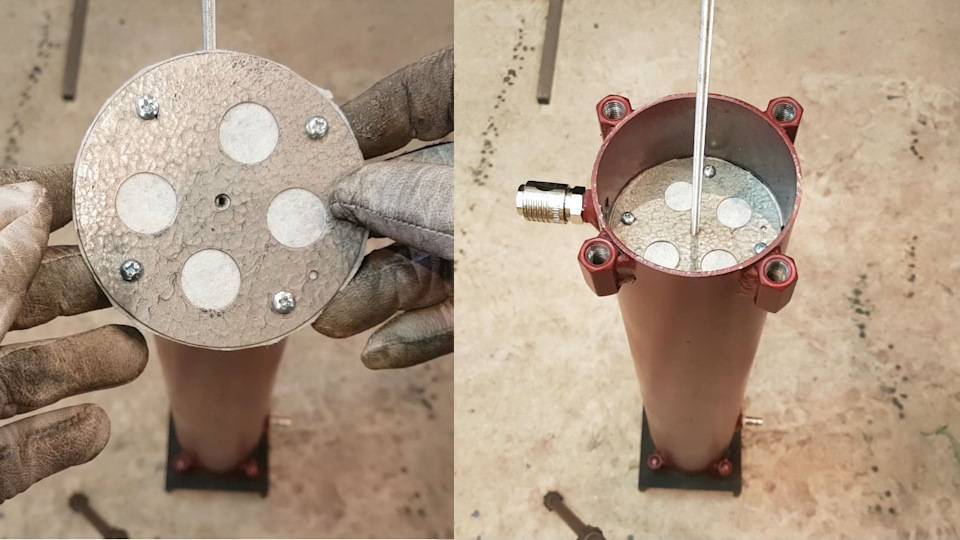- По центру верхней заглушки необходимо вварить патрубок для выхода очищенного потока воздуха.