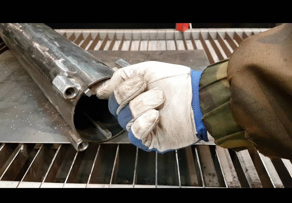 - На расстоянии 120 мм от нижней заглушки в стенку необходимо вварить патрубок через него будет поступать поток воздуха