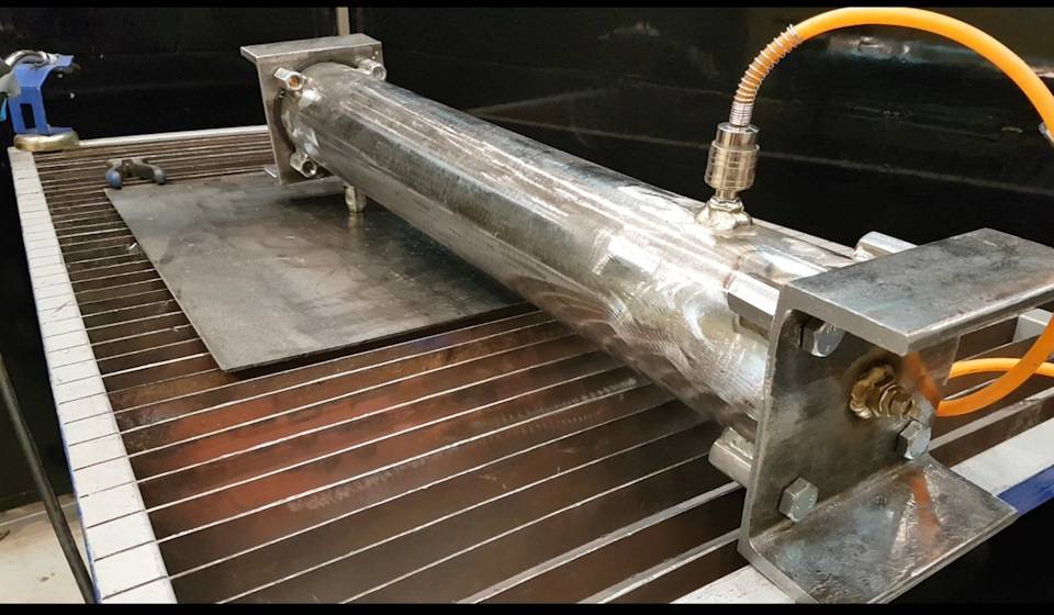 Корпус циклона представляет собой трубу, заваренную с обеих сторон. Следует учесть, что воздух внутрь будет подаваться под высоким давлением, поэтому стенки корпуса должны быть достаточно толстыми. Также в качестве заготовки можно взять газовый баллон или огнетушитель — они как раз рассчитаны на высокое давление.