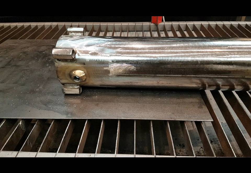 - Снизу, на расстоянии не менее 120 мм от нижней заглушки (труба будет устанавливаться вертикально), в стенку корпуса нужно вварить штуцер, через который будет подаваться воздух. Штуцер правильнее всего вваривать по касательной, но если такое решение представляется для вас слишком сложным, приварите его просто сбоку.