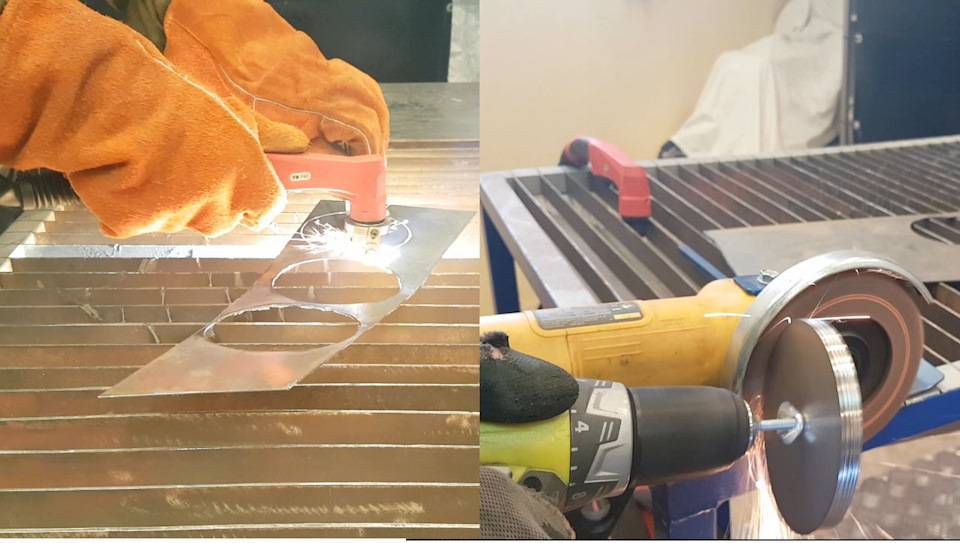 Из 1 мм. стального листа вырезаю 5 кругов для внутренних перегородок. И обтачиваю их точно под размер трубы