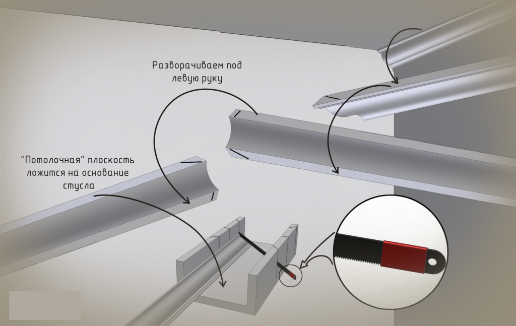 Они хорошо поддаются обработке специальной мелкозубчатой ножовкой. Также можно воспользоваться надежным полотном по металлу. Так как же обрезать потолочный плинтус правильно?