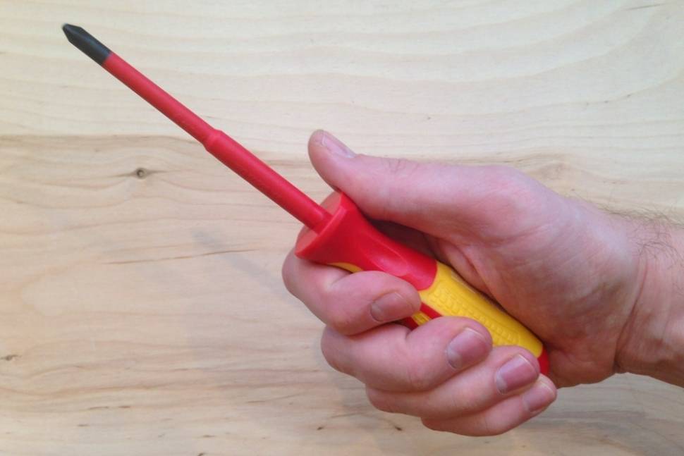 Для электриков обычная отвертка никак не подходит. В данном случае необходимо использовать специальную модель, выполненную из изоляционного материала. Таким образом, специалист получает защиту от удара током.
