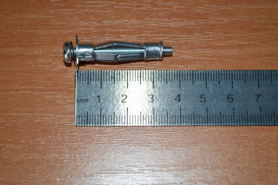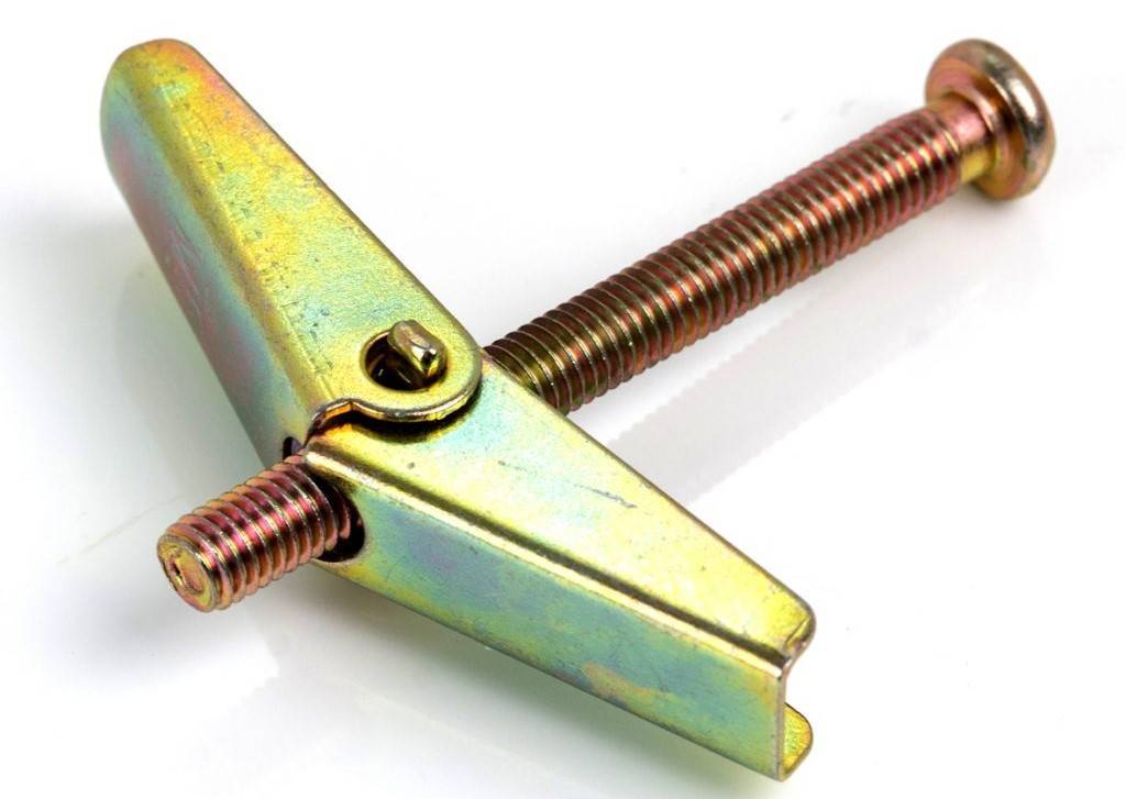 Изделие получило название бабочка, поскольку имеет свойство при закручивании раскрываться в свободном пространстве и с обратной стороны упираться в поверхность крылышками. Принято оборудовать особыми манжетами, которые смогут препятствовать его прокручиванию. Самыми распространенными, применяемыми в строительстве, являются изделия размером 9*13 мм и 10*50 мм. Во время приобретения они предлагаются в сложенном виде. Для полноценного раскрытия потребуется саморез, имеющий длину не более 55 мм.