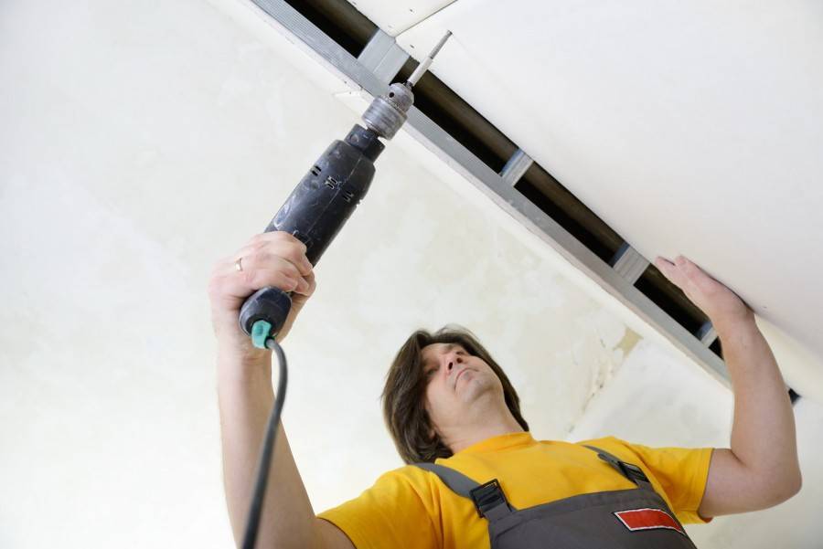 - Перфоратор. Это важнейший инструментов для работы с профилем для гипсокартона. Перфоратором сверлят в стене или на потолке отверстия для крепления профиля. Альтернатива перфоратору – ударная дрель, которая используется, когда его нет под рукой. Не забывайте, что сверлить отверстия придется в большом количестве. А если дом сделан из железобетонных конструкций, то процесс сверления обычной дрелью затянется надолго.
