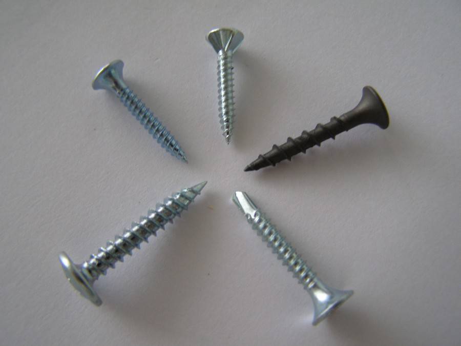 Самонарезающие шурупы для гипсокартона по металлу представляют собой винт со стержнем в виде конуса, заостренного на конце. Они применяются для крепления гкл к металлическому профилю. В случае если толщина металла превышает 0,7 мм, то подойдут шурупы для профиля со сверлом на конце, вместо обычного заострения. Они используются для профилей с толщиной стенки 07-2,2 мм.