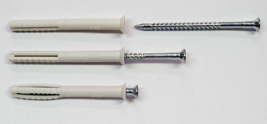Для монтажа пластмассового дюбеля часто предлагается специальная бита-насадка. Нагрузка на вырыв изделия из материала составляет для пластика минимум 25 кг, а для металла – где-то 32 кг.