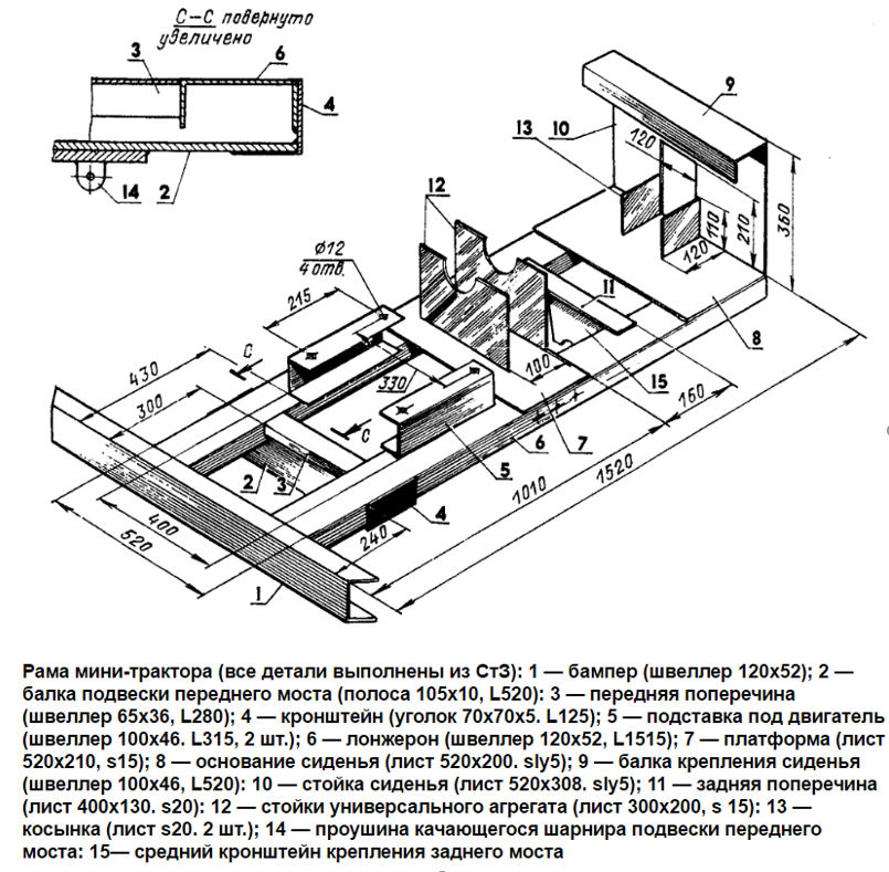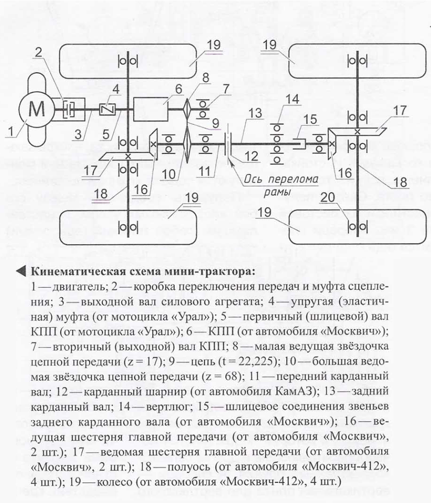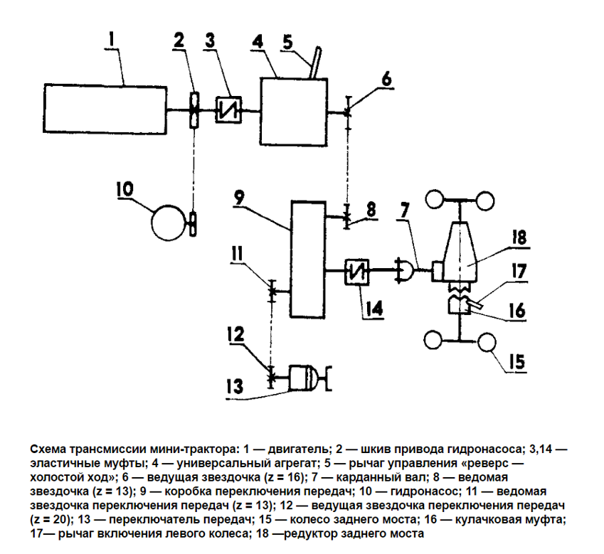 На различных сайтах, посвященных мотоблокам, есть много тем, которые раскрывают секрет переделки. Помимо детального описания, можно найти схемы и чертежи, которые указывают, как правильно собрать из мотоблока Беларус минитрактор. Основой является кинематическая цепь.